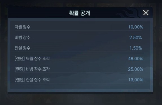 그런데 전설장수 획득확률은 1.5%로 너무 낮아요